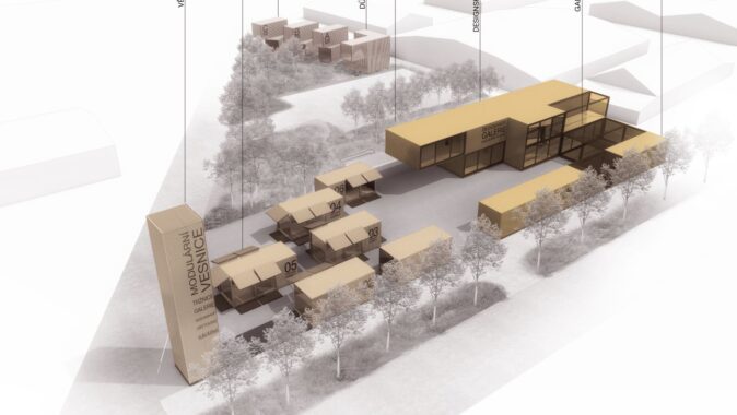 Základním prvkem konceptu modulární vesnice je standardní přepravní