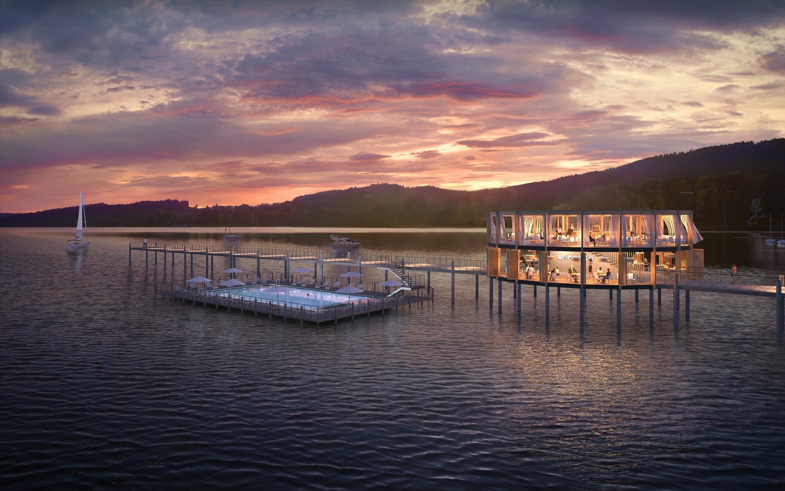 zakončí 150 metrů dlouhé dřevěné molo s restaurací a jezerním vyhřívaným