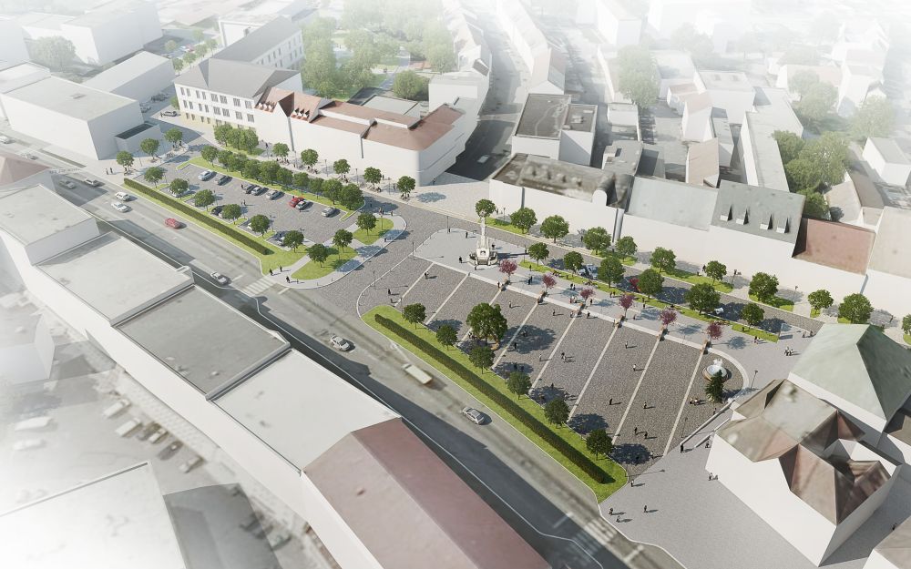 plocha náměstí má jasný nekomplikovaný tvar vycházející z klasických