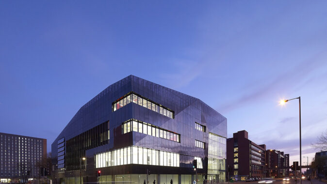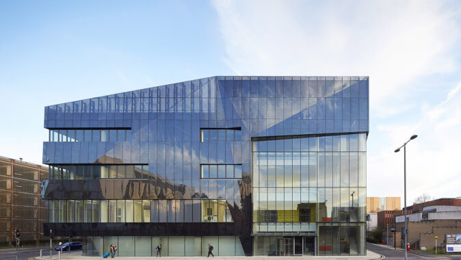půdě Univerzity v Manchesteru v moderní 5podlažní budově na celkové