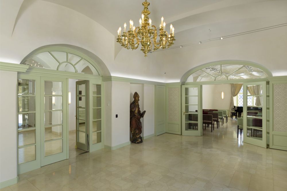Nový systém podlahového vytápění v kombinaci s tělesy a krby/kamny. Nové vnitřní okenice jako tradiční ochana proti úniku tepla. Chlazení pomocí stropních panelů v podkrovních apartmánech. Akustická opatření v sále a v předsálí. Zcela nové střešní souvrství včetně nových vikýřů. Kompletně nově vytvořená fasáda z trasvápenných a vápenných omítek. Repasování výplní otvorů.