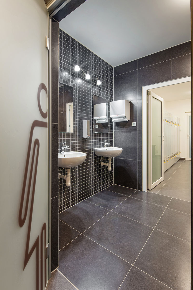 dlaždice ze série Color Two, značky RAKO OBJECT. V místnostech pro personál pak