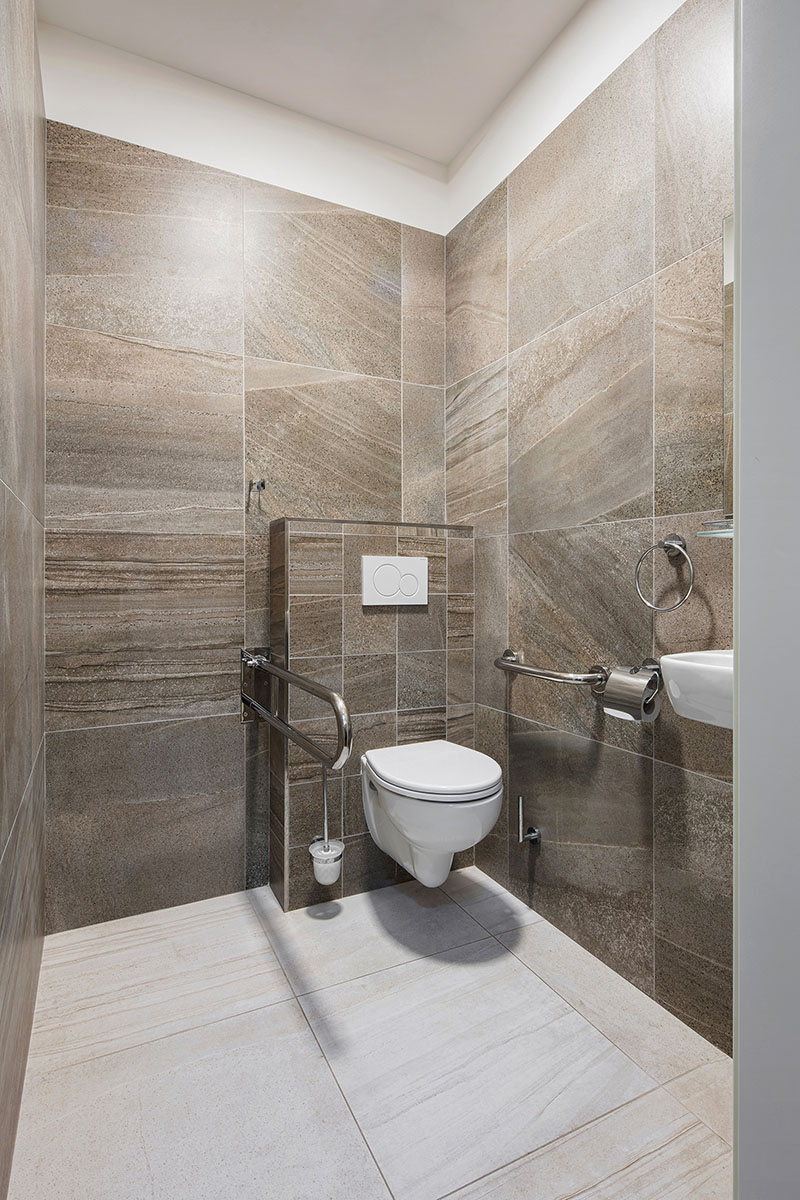 jejich vybavení. Nové keramické obklady s designem světlého kamene harmonizují
