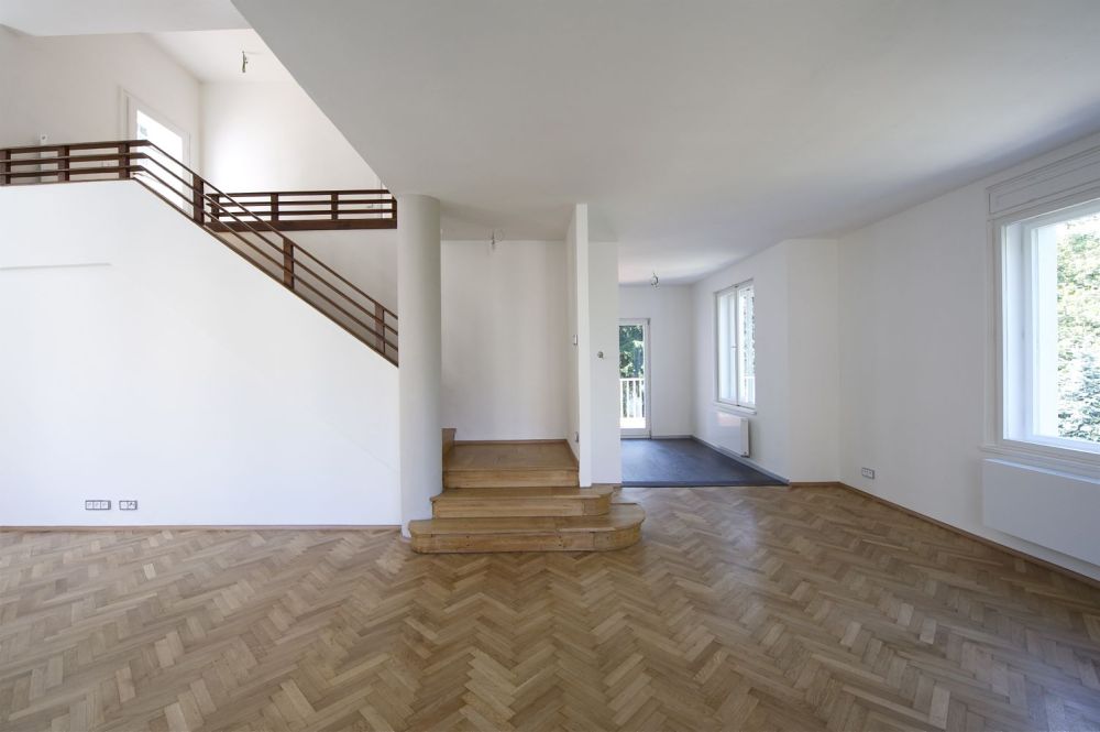 V interiéru byly provedeny zejména opravy zajišťující ochranu proti zemní vlhkosti a výsledná dispozice je tvořena jednou bytovou jednotkou na všech podlažích, která obsahuje hlavní obytný prostor propojený s jídelnou a kuchyní, šest ložnic a čtyři koupelny. Tuto jednotku lze v případě potřeby rozdělit až na tři samostatně přístupné byty.