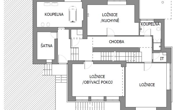 Ve druhém suterénu bylo navrženo vybourání francouzského okna – velikostí a členěním navazuje na okno v 1. suterénu. V 2. suterénu byl rovněž upraven vstupu a okna do kotelny a sociálního zázemí. V přízemí se rozšířilo okno v hale ve velikosti a členění okna pod ním. Nové okno je také v obytné kuchyni, které má velikost poloviční a členěno je obdobně. Do obytné kuchyně jsme navrhli podobné francouzské okno, které umožňuje vstup na novou terasu. Ta je pro užitnou hodnotu přízemí zásadní, jelikož je toto podlaží již v původní koncepci hlavním obytným prostorem. Terasa umožňuje kontakt tohoto prostoru se zahradou.