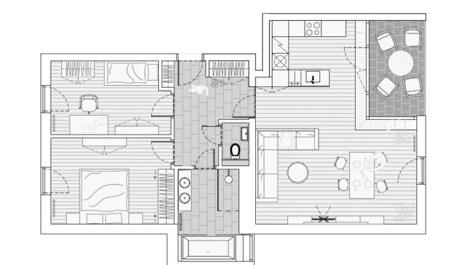 sjednocující prvek, abychom dosáhli kontinuity bytu. Zajímavým detailem je