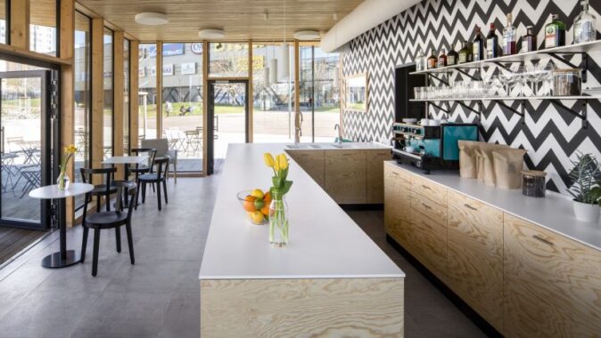 Na náměstí vznikl nový pavilon s kavárnou. Dřevostavbu přesahuje zelená