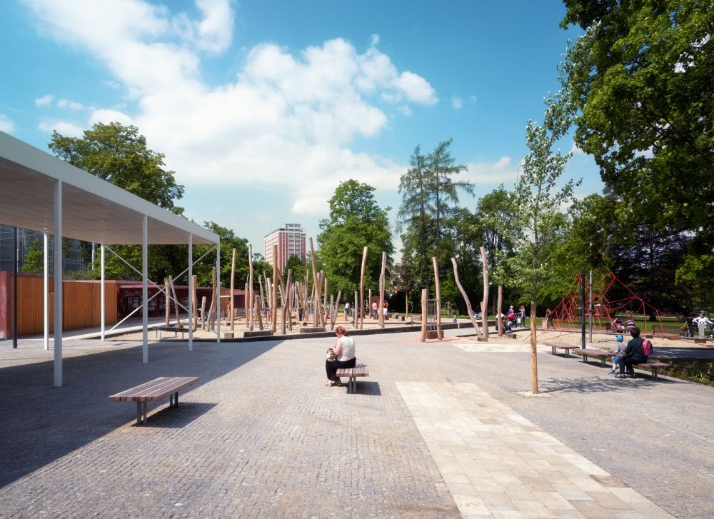 Celková podoba parku i pěší zóny na Školní působí svěže a moderně a i přes