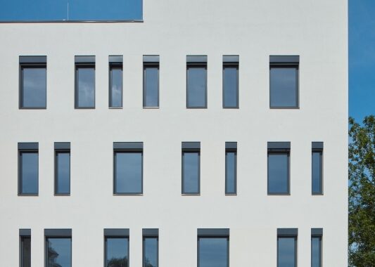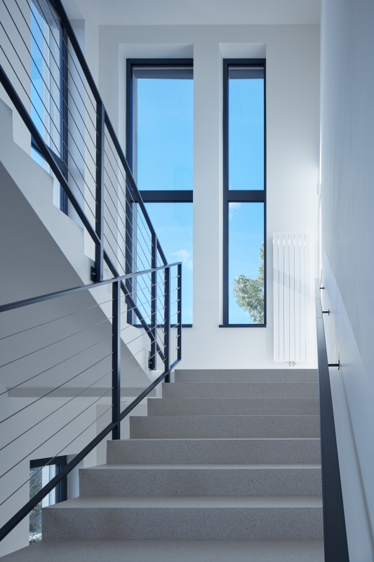 – Lakované veškeré fasádní prvky, včetně hliníkových profilů oken a dveří