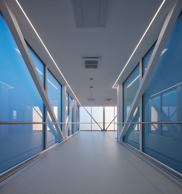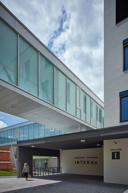 Pavilon interny je dále spojen s pavilonem chirurgie a budovou SVLS pomocí spojovacího krčku ve třetím nadzemním podlaží, který umožňuje bezbariérový přístup.