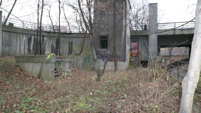 vyrostla mýtní budka spolu s veřejnými záchodky a několika úrovňové terasy včetně