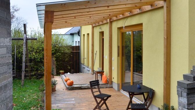 oslavou jsou masivní dřevěné překlady a průvlaky. Tyto nosné prvky byly záměrně