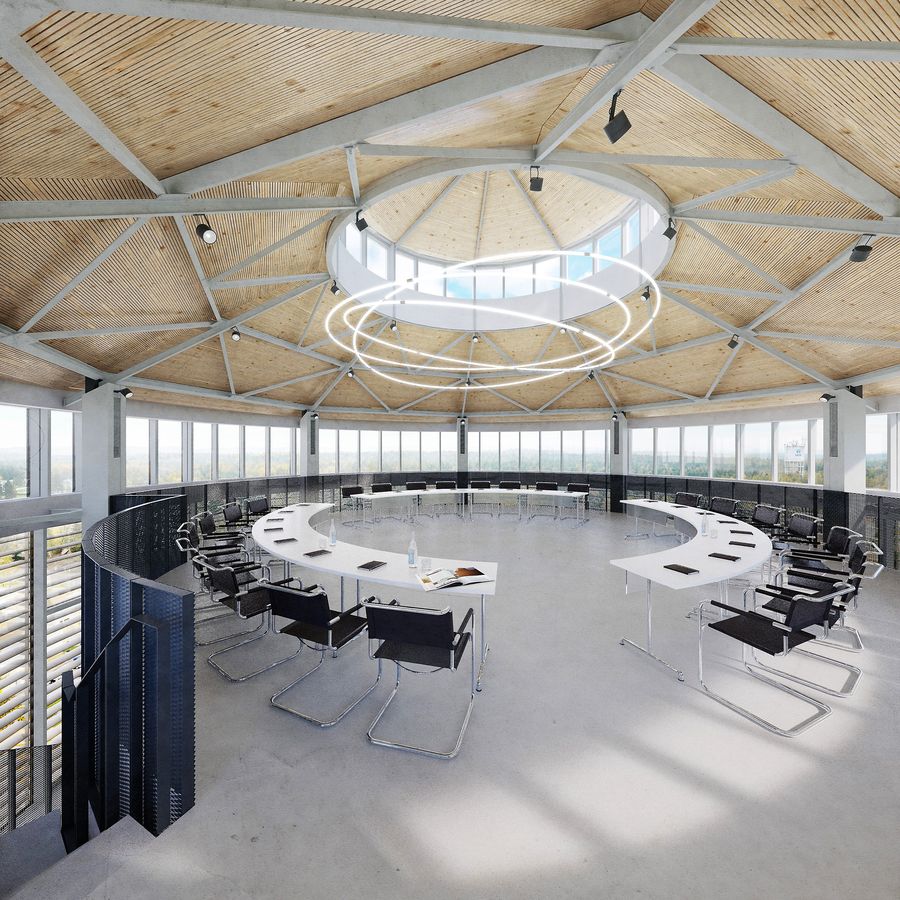 krovem ukončeným kruhovou lucernou se tak otevře panoramatický jednací
