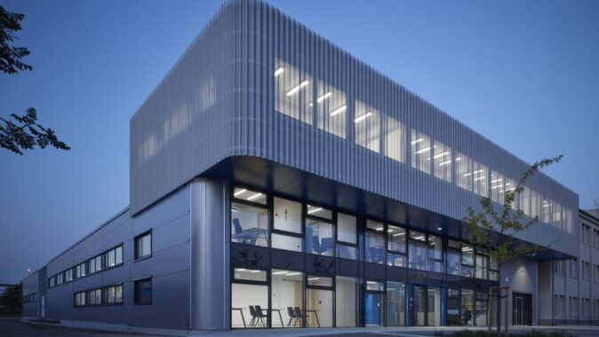 Hala obdélníkového půdorysu splňuje požadavky pro výrobu – je tu dostatek denního světla, které proniká hlavními okny a světlíky orientovanými na severní stranu. Prostor je přehledný a čistý s celoročně stabilní teplotou pohybující se okolo 24 °C. Hala má pochozí zelenou střechu, opláštěná je sendvičovými panely, které přecházejí na administrativní část. Třípodlažní budova administrativy je monolitickým betonovým skeletem, který je přiznaný v interiéru. Kanceláře mají svým rozměrem a nízkou světelnou výškou blíže pokojům v rodinných domech než v rozlehlých openspace. Důležitým komunikačním prvkem uvnitř objektu je malé zastřešené atrium, jímž proniká světlo. Stěny halové i administrativní části jsou ve velké míře transparentní, jen výtahová šachta a vstup do domu je zvýrazněný modrou firemní barvou. Z jedné budovy je možné vidět do druhé a naopak. Průhled na pracující firmu funguje také z exteriéru. V atriu jsou ochozy, které slouží jako místo setkávání a zároveň cesta na zelenou střechu. Společně s novými objekty došlo i k úpravě parkoviště.