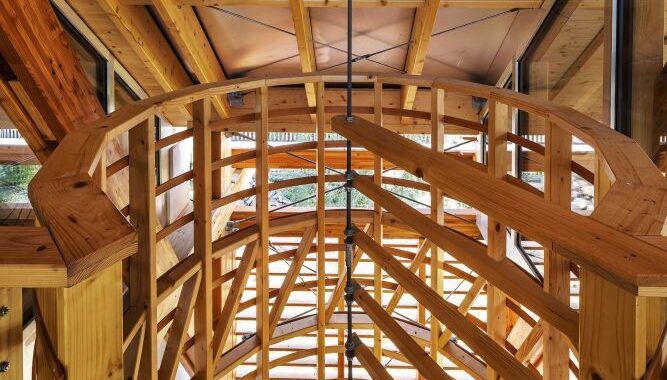 pohled vidět, jak správně tvarované dřevo může vytvářet krásu v prostoru, aniž