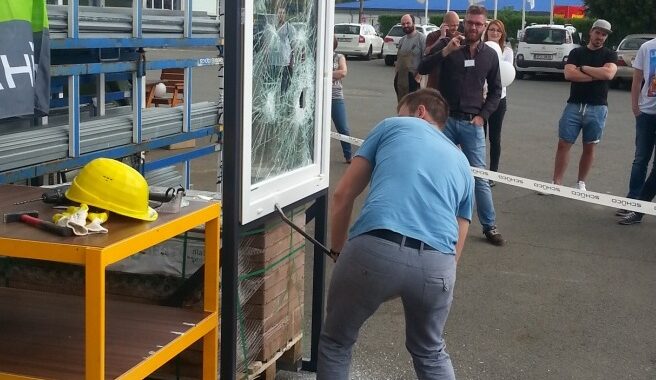 Na dnech otevřených dveří společnosti WELL OKNA měli návštěvníci možnost násilným způsobem překonat plastové okno v bezpečnostní třídě RC2. Tato třída je definovaná tak, že se příležitostný pachatel pokouší vniknout do uzamčeného prostoru za pomoci jednoduchého nářadí (šroubovák, kleště a klíny). Produkty s touto třídou odolnosti poskytují až 3minutovou ochranu proti pokusu o násilné vniknutí. Okno společnosti WELL OKNA, kombinující kování Roto, bezpečnostní sklo AGC, profil Schüco Corona SI 82 a zamykatelnou kliku Schüco, úspěšně odolalo 20minutovému dobývání, po kterém bylo testování ukončeno. Žádný z návštěvníků nedokázal za pomoci páčidel a kladiv okno otevřít. Na plastových profilech byly vidět jasné známky páčení a sklo bylo rozbité. Okenní profily však nepraskly a bezpečnostní sklo, jehož rozbití bylo namáhavé, se nevysypalo. V reálném životě by pravděpodobně žádný pachatel nesetrval u pokusu o vniknutí po tak dlouhou dobu, neboť by na sebe významně upozorňoval.