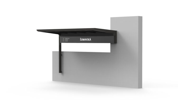 všechny ostatní stěny průhledné. Uvnitř zastávky je umístěn orientační