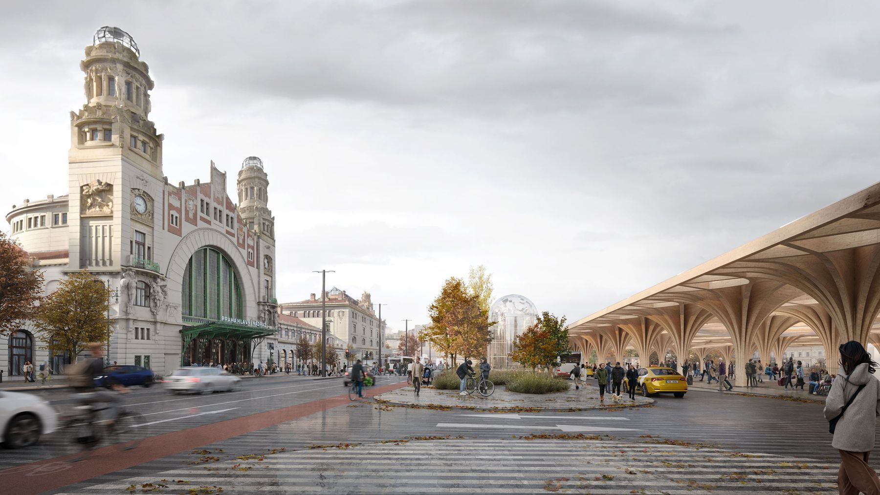 Prostor v přední části haly, který dnes není příliš využívaný, bude nově otevřený do všech stran a propojený s parkem. Díky otevření celé plochy budou cestující moci na nádraží přicházet ze všech směrů, tj. přímo z Vrchlického sadů, od ulice Bolzanova nebo z Václavského náměstí. Výsledné zpřehlednění území umožní cestujícím okamžitou orientaci i příjemný pohyb v prosvětleném a otevřeném prostoru. Kompletní zastřešení zase poskytne mnohem větší komfort, protože cestující mohou přejít z tramvajové zastávky přímo před halou až do metra, vlaku, autobusu i na taxi bez bloudění a suchou nohou. Přitom se jim otevírá výhled na impozantní historickou Fantovu budovu. Samozřejmostí je bezbariérovost celého prostoru. Boční vstupy z parku budou například ve stejné úrovni jako přístupy k vlakům.