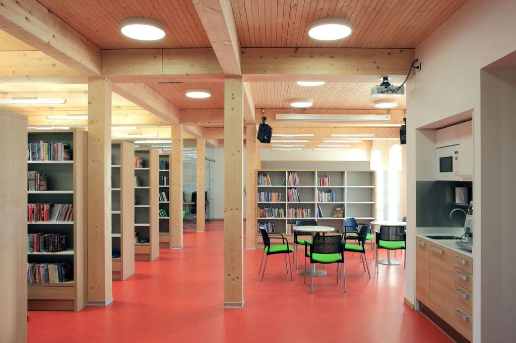 knihovny, která sice působí jako nenápadná rekonstrukce, ale uvnitř vše