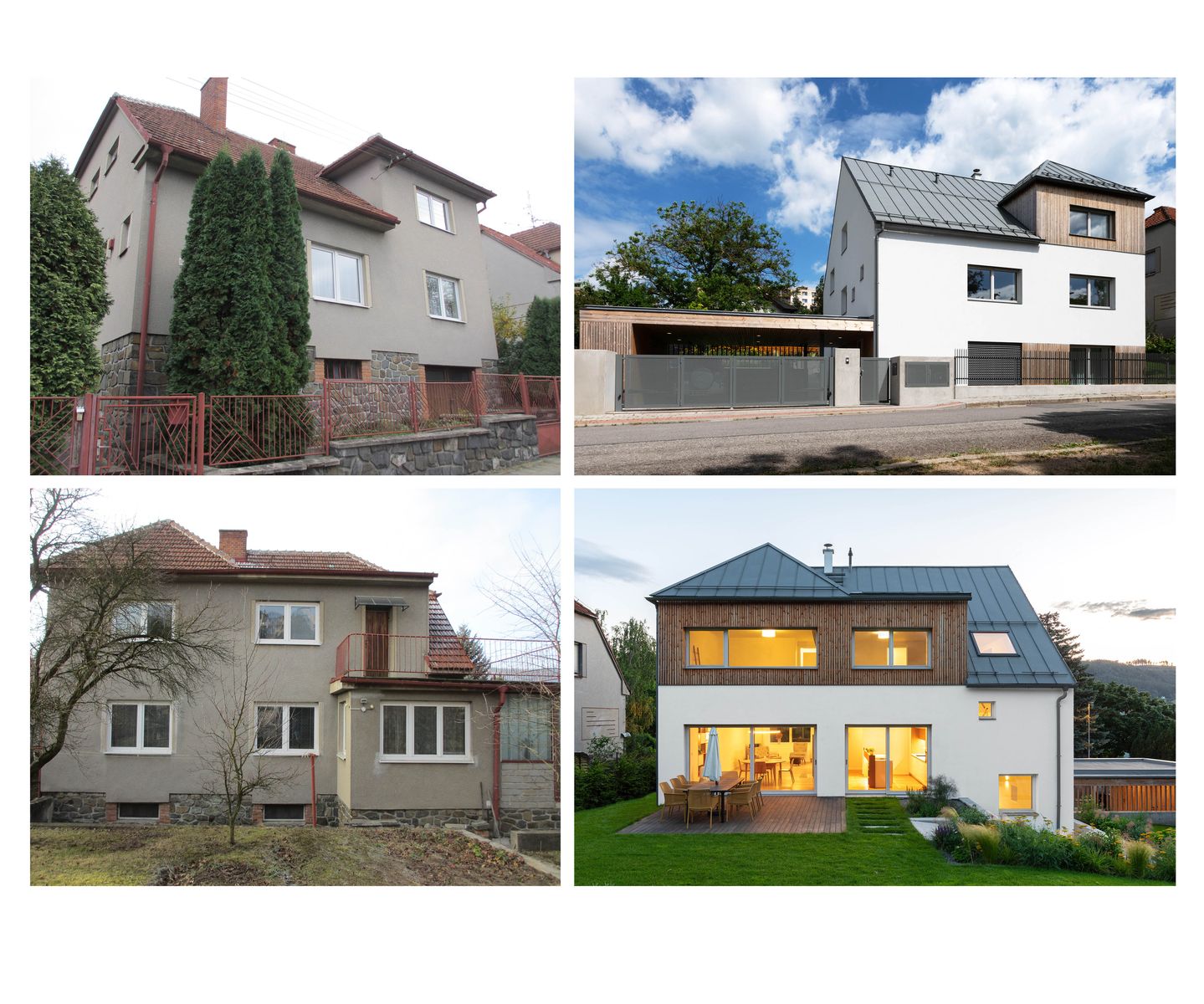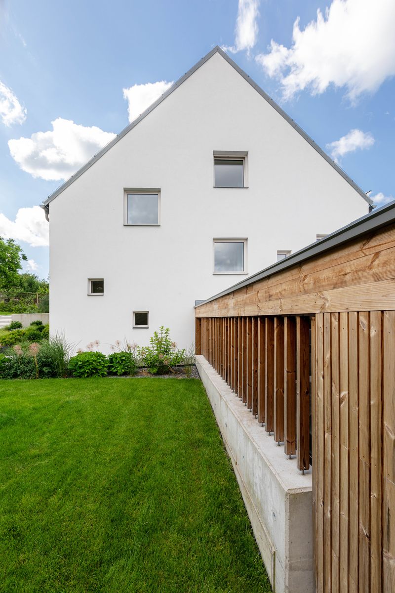 Součástí úprav domu je návrh celého pozemku. K obojímu je přistupováno rovnocenně a na vzájemné fungování vnitřní dispozice a zahrady je kladen velký důraz. Nejzásadnějšími úpravami v zahradě za domem je dorovnání terénu na úroveň podlahy v 1np. Což umožnilo přímé propojení obytného podlaží se zahradou oproti původnímu stavu, kdy se do zahrady vstupovalo obcházením domu přes vstupní halu se schodištěm.