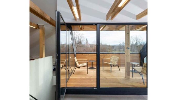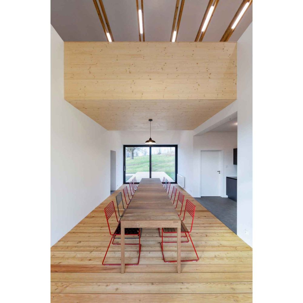 Původní stavení jsme očistili a doplnili jen několika architektonickými zásahy. Stodola má místo vrat prosklené HS portály a skrze ni probíhá dřevěná terasa. V podkroví vznikl jeden velký vzdušný prostor s propojovací lávkou nad přízemím a vloženou lodžií přinášející světlo. Je zde vytvořeno místo pro příjemnou venkovní pauzu s výhledem na kostel a kopce v pozadí.