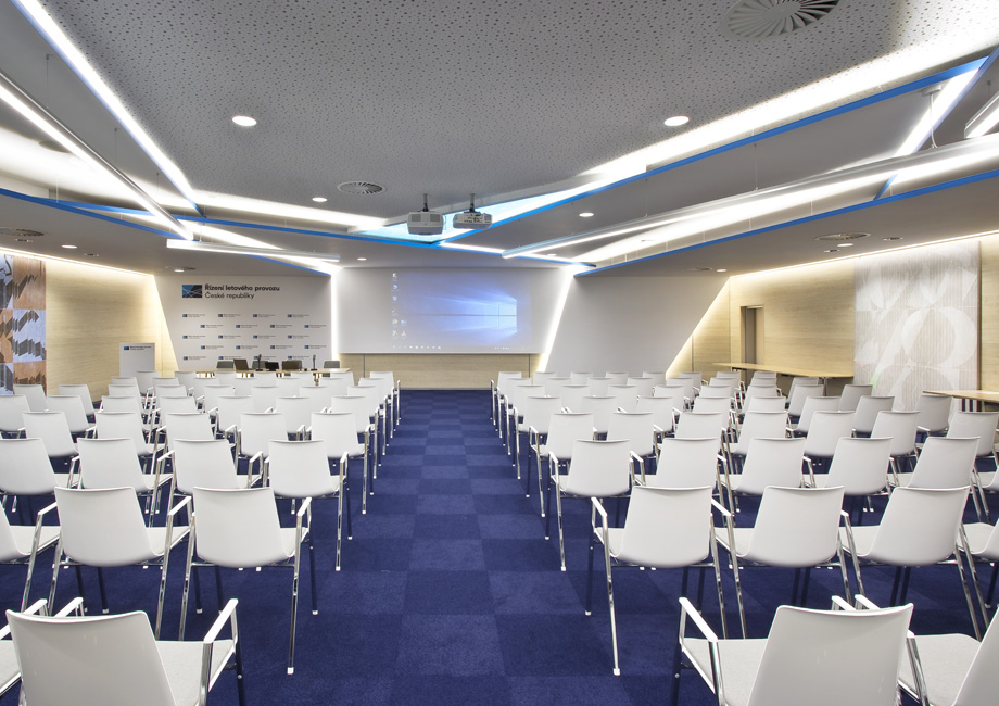 technických místností v budově Řízení letového provozu. Sál se nachází v druhém