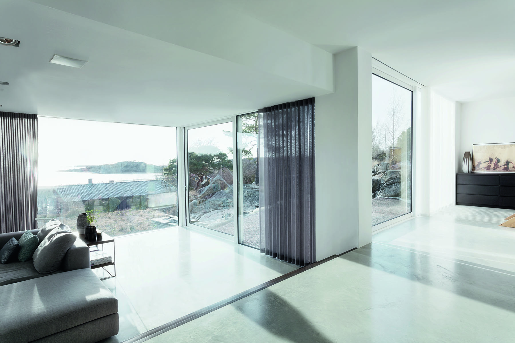 okny od podlahy až ke stropu a posuvnými systémy, aniž by bylo nutné