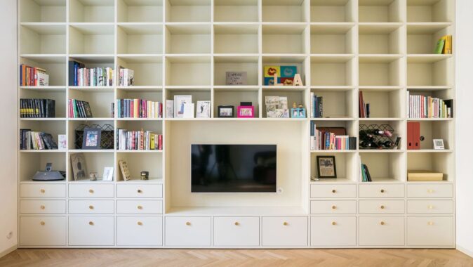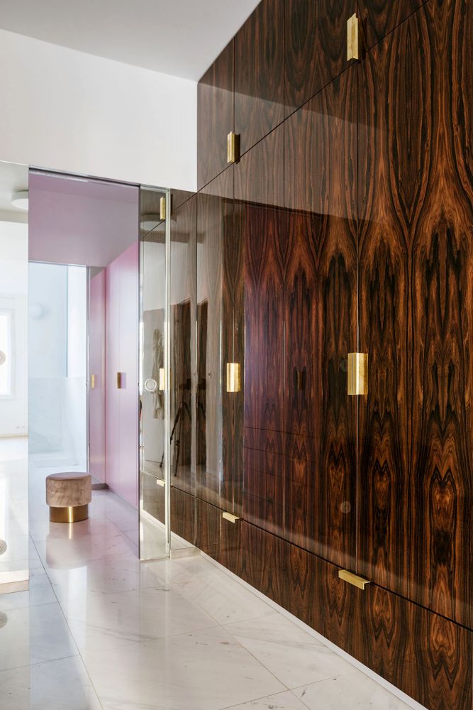 bytom sa tiahne šatníková stena, ktorá poskytuje dostatok úložného priestoru