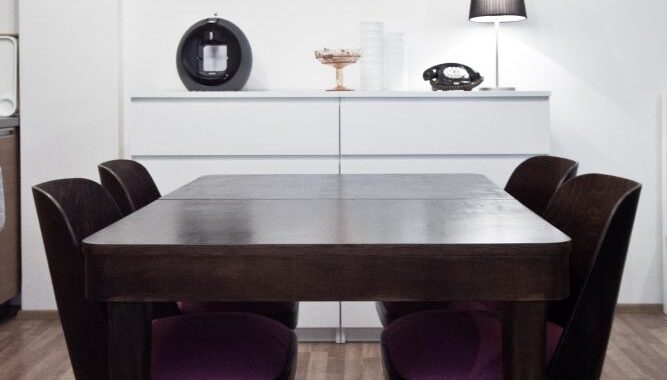 šedesátých let (jídelní stůl, židle, křeslo) a na jejich repasování. Prostorná