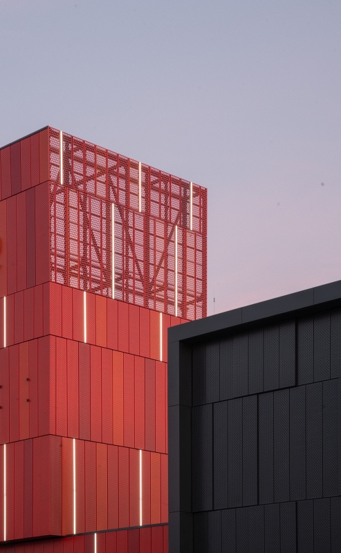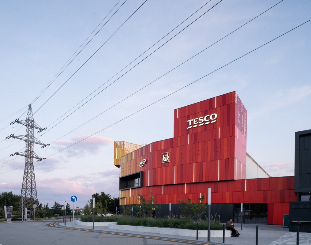 „Všechny naše zásahy vedly k tomu, aby se lidé přicházející do tohoto centra cítili jako ve městě a ne na jeho okraji,“ uvádí spoluzakladatel a partner KOGAA Tomáš Kozelský. Části fasády, které pak nekomunikují s návštěvníkem-chodcem, jsou ponechány ve větším měřítku tak, aby byly vhodně vnímány návštěvníkem-řidičem, jehož rychlost i vzdálenost ovlivňují působení budovy. Barevnost fasády je dalším elementem, který rozbíjí rigiditu hmotového řešení a postupným přechodem barev umožňuje návštěvníkům lépe se orientovat ve vztahu ke komplikované dopravní situaci v okolí centra.