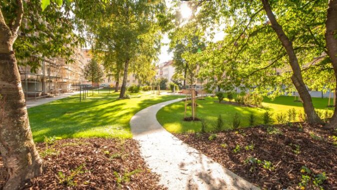 V konceptu úprav vnitřních dvorních prostor mezi obytnými bloky šlo zejména o