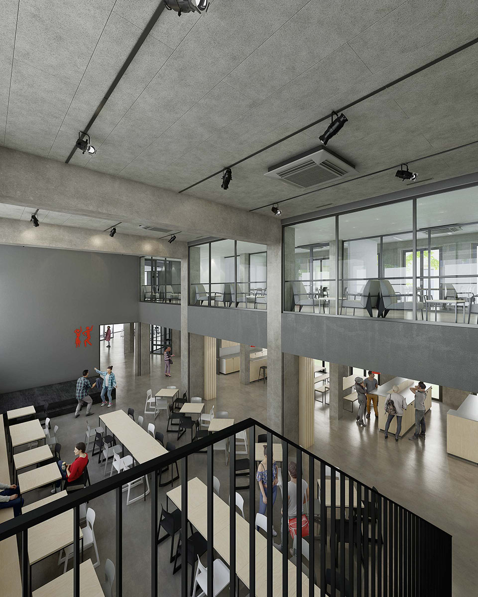 uličního parteru a bude otevřená pro studenty i veřejnost, dále s party místností,