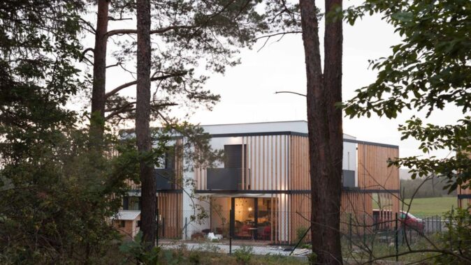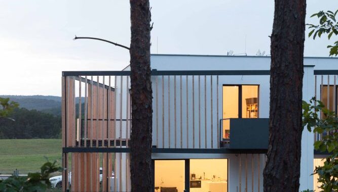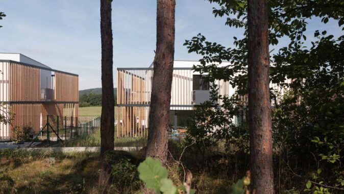 Koncept: Jednoduché krychle doplněné předsazenou dřevěnou