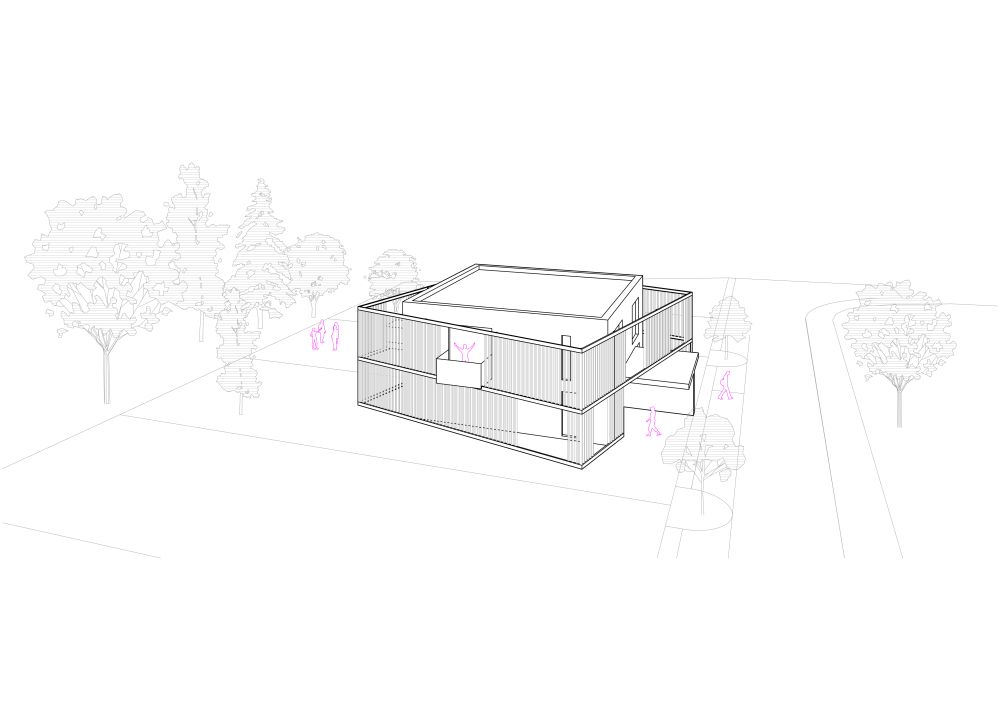 prvkem celého projektu je předsazená ocelová konstrukce s dřevěnou výplní,
