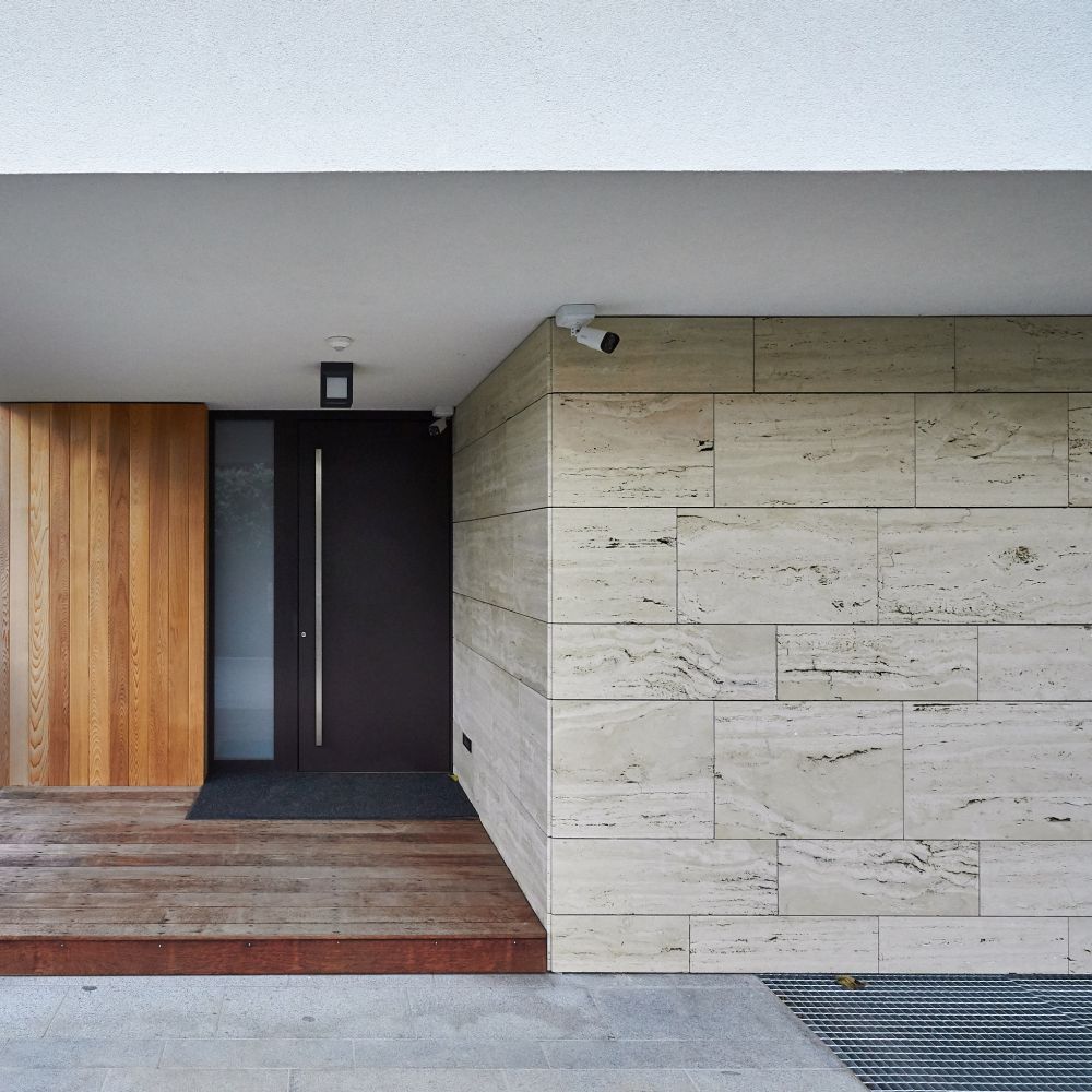 jednotlivými materiály dům pocitově zmenšuje a v úrovni zahrady vytváří příjemné