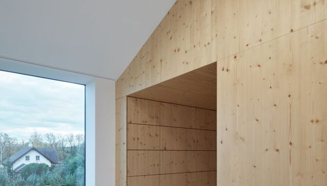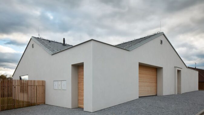 Kontrast mezi velikostí parcely (813 m2) a poměrně velkorysým stavebním programem nás vedl k logickému – v obdobných čtvrtích však ne zcela běžnému umístění domu: využili jsme krajních možností legislativou stanovených minimálních odstupů a objekt jsme usadili pouhé dva metry od hranic veřejného prostoru. Z těchto dvou stran pozemek nemá oplocení. Tak úzký pruh mezi plotem a domem nepřináší tolik pozitiv jako rozšíření veřejného prostoru až ke zdi domu. Ulice tak získala plochu navíc – místo pro lokální zeleň, pro lavičku, pro hry dětí, pěknou výdlažbu, pro rychlé zaparkování vozidla. Využitím krajních možností usazení domu nabývá na dimenzi i zahrada, která na objekt navazuje z jižní strany.