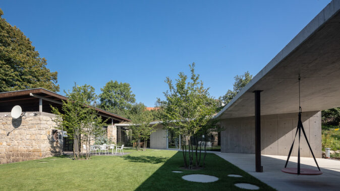 Přestože architekti jako ústřední konstrukční materiál stavby použili pohledový beton EASYCRETE® od společnosti Českomoravský beton, z něhož je celá přístavba odlitá, není objekt nijak výstřední. Naopak, vzhled domu je i díky velkým oknům svěží a moderní a přirozeně zapadá do okolní krajiny i díky přiznaným kamenným zdem.