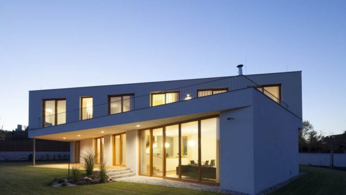 nových rodinných domů. Zděný dům má dvě hmotově identická podlaží, horní