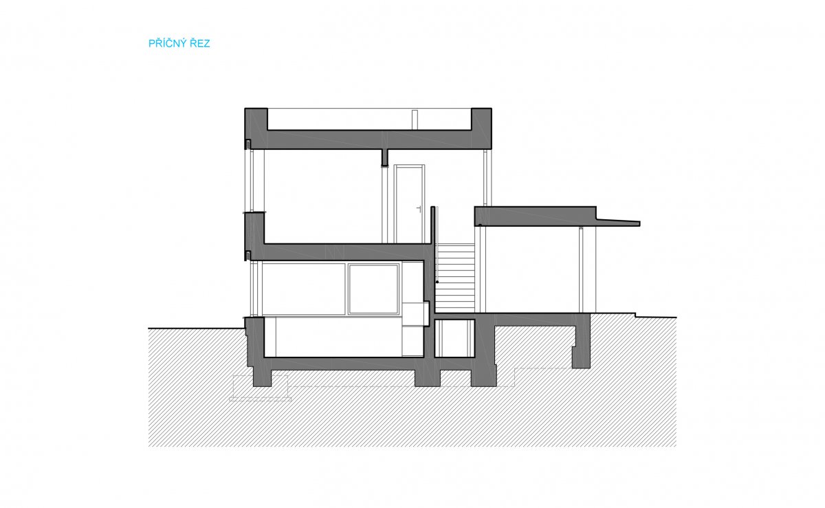 uspořádání domu odráží sklon okolního terénu a reaguje na něj kombinací