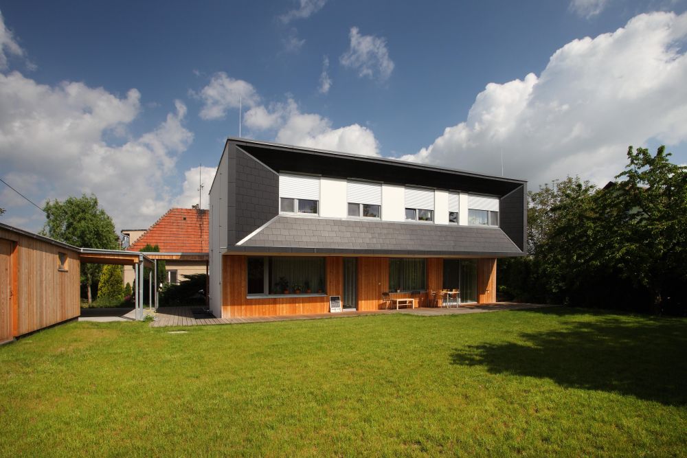Rodinný dům pro čtyř až pětičlennou rodinu vytváří moderní prostředí pro bydlení, svou orientací a usazením v severozápadní části zahrady však respektuje charakter zástavby starší obytné čtvrti.
