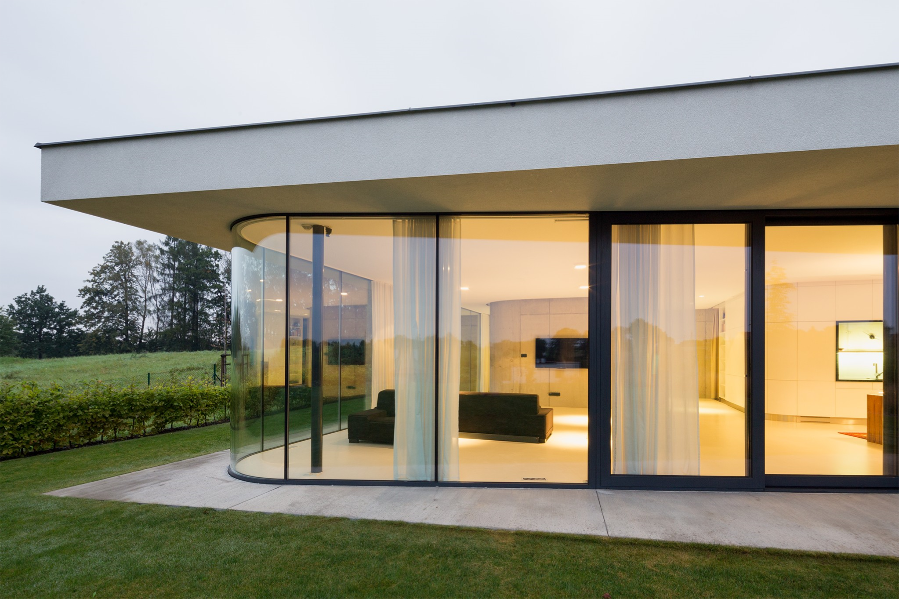 objektu. Naopak celá jižní část domu je prosklená. Na terasu s bazénem