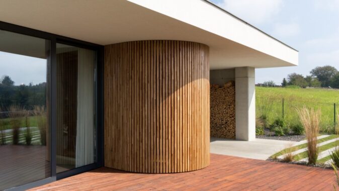 vybíhá z interiéru domu solitér sauny.