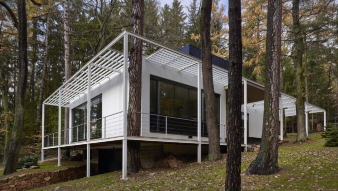 velkorysému prosklení je procházka domem i procházkou lesem. Dům je orientován
