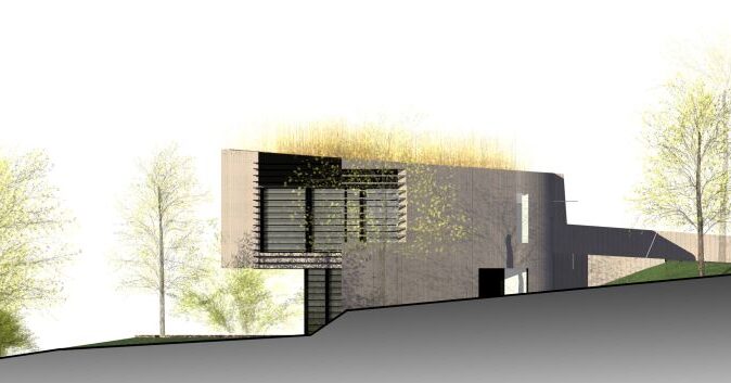 jihozápadě. Dům využívá přirozeného sklonu svahu, má jedno podzemní, plně