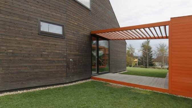 smrkového dřeva Thermowood, které je napuštěno černým olejem. Nika se vstupem