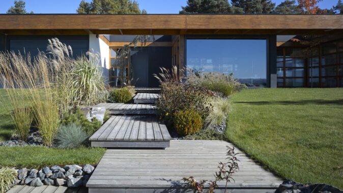 Podstatnou roli hrálo spojení se zahradou a vodní plochou ve středu domu.