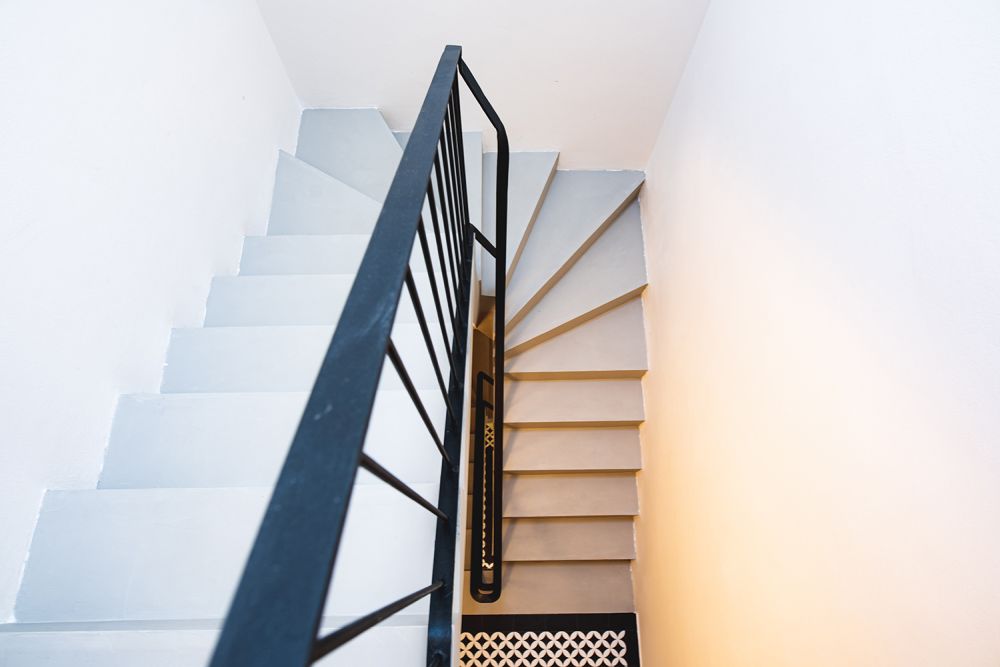 Dispozičně dům navazuje na původní objekt: zachovává umístění vstupu a hlavního komunikačního prostoru. Ze společné chodby s úložným prostorem pod schody, je přístup do bytů. mají vždy dva pokoje orientované do ulice, hygienické zázemí uprostřed dispozice a hlavní obytný prostor s kuchyní a jídelnou, který navazuje na zahradu, v podkrovním bytě jen pohledově.