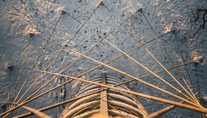 Hlavní nosná konstrukce má dvě vrstvy: tuhé ocelové jádro a tažený vnější plášť z ocelových táhel. Tuhé jádro tvoří soubor ocelových prvků složený ze svislých sloupků, vodorovných nosníků ve tvaru prstence a táhel stěnového ztužení. Vnitřní prostor vyplňuje ocelové točité schodiště. Síly vyvolané zatížením návštěvníky, povětrností a tíhou samotných prvků konstrukce jsou do podloží přenášeny pomocí základové železobetonové kruhové desky. Ta vybíhá mírně nad úroveň terénu a vytváří tak sokl rozhledny.