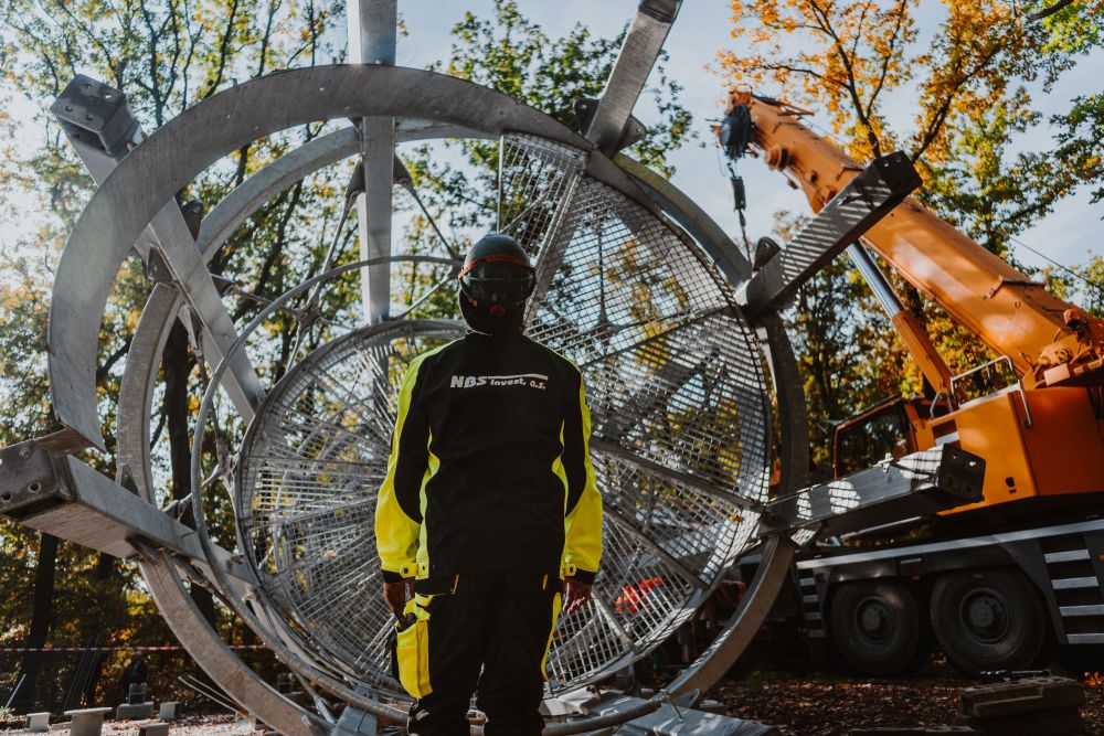 Veškeré prvky rozhledny byly navrženy s ohledem na dostupné výrobní technologie a komplikovanější přepravní podmínky v rámci obory. Rozhlednu jsme proto navrhli jako soubor malých prvků montovaných pomocí jeřábu na místě.
