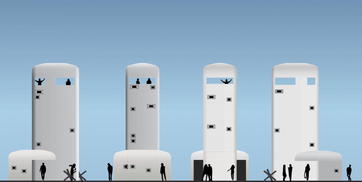 Věžovitá stavba se symbolikou vojenské stavby bunkru.Stavba bude provedena jako monolitická betonová do bednění.